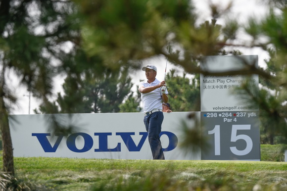 【golftime讯】第22届沃尔沃中国公开赛4月29日在北京怀柔通盈·雁栖湖高尔夫俱乐部展开了第二轮的争夺。比赛由于雷雨天气于下午15时50分暂停,尚有79名选手没有完赛。世界排名477位的智利选手菲利普-阿奎拉(Felipe Aguilar)第二轮交出65杆,总成绩133杆(68、65)-11暂时取得会馆领先。瑞典选手亚力克斯·诺伦(Alex Noren)、奥地利选手贝恩德·维斯伯格(Bernd Wiesberger)总成绩134杆-10,以1杆之差排名并列第二位。韩国选手金泰勋、英格兰选手泰瑞尔·哈顿(Tyrrell Hatton)、丹麦选手卢卡斯·毕雅格(Lucas Bjerregaard)总成绩低于标准杆9杆并列排在第三位。另外,首轮领先的南非选手亨尼-奥托(Hennie Otto)以及德国名将马塞尔-西姆(Marcel Siem)尚未完成比赛,目前总成绩为-9。目前比赛的预计晋级线为低于标准杆2杆。