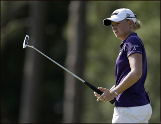 比赛暂停时,共有5名球员打出低于标准杆的成绩,还有30名球员没完成比赛。上周男子比赛时,马丁·凯梅尔等15名球员首轮后的成绩是低于标准杆。女球员们周四的平均成绩是75.73杆,比男球员首轮的平均成绩高了2.5杆。