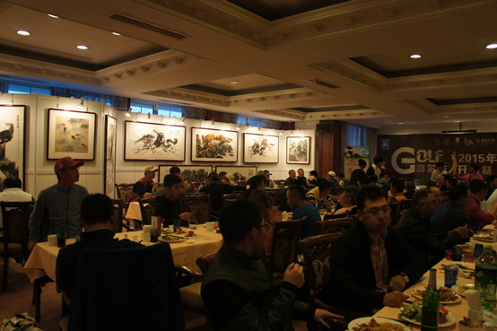 【golftime讯】2015年4月10日大宗高尔夫开杯赛晚宴加入了中国传统艺术绘画板块。蒙古族职业画家《龙马精神》在现场得到了热烈的反响。