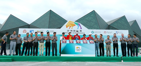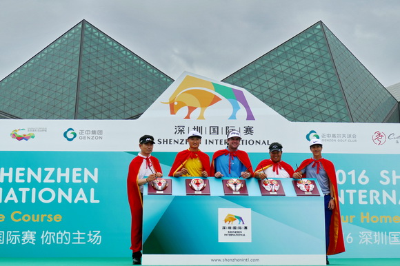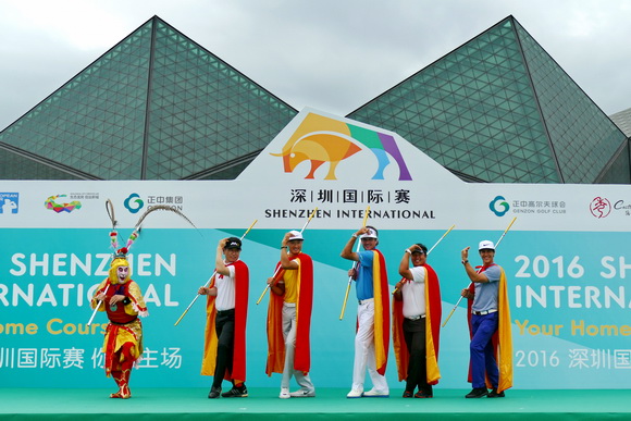 【golftime讯】2016深圳国际赛4月19日14时许在深圳大运中心举行了别开生面的开幕仪式,宣告着代表深圳精神的金牌赛事如期到来。在开幕式现场,象征中国猴年生肖的“美猴王”和化身京剧造型的赛事吉祥物“挥挥”同台表演引来现场掌声不断,世界排名第四巴巴·沃森、中国高坛新星李昊桐、亚洲传奇梁容银、首届深圳国际赛冠军阿费巴拉特以及丹麦小将托比约·奥利森在现场进行点睛仪式,把现场气氛推至最高潮,为第二届深圳国际赛隆重地揭开帷幕。