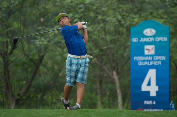 【golftime讯】2016广东省青少年高尔夫球公开赛暨欧洲高尔夫球挑战巡回赛-佛山公开赛资格赛,7月12日在佛山高尔夫球会正式打响。来自全国各地的100名小球员不畏风雨,拿出各自的绝活,为各个组别的冠军展开激烈的拼搏。来自深圳的蔡沂辰在交出74杆(+2)后,以两杆的优势,获得男子A组首轮领先,而首届佛山公开赛资格赛冠军欧阳天鹏则以76杆(+4)列第二名。女子A组方面,首轮领先者为来自深圳的胡婧,她的成绩是80杆(+8)。