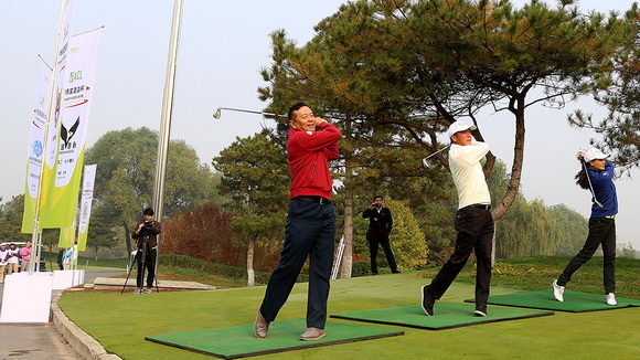 今天,十月的北京温度适宜,没有刺眼的阳光。上午9:30,北京市高尔夫球协会副主席兼秘书长范越和中国著名高尔夫职业球员张连伟,以及本赛事唯一的女选手昆明滇池·玉龙湾高尔夫球队丁逸雯,共同为比赛开球。除了6支创始成员球队外,北京友朋高尔夫球队二队也加入了战斗。