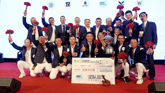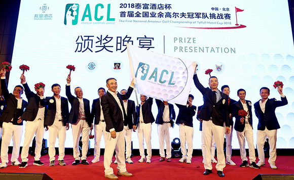 【golftime讯】北京时间10月24日,由全国业余高尔夫球冠军队联盟主办、北京友朋高尔夫球队承办的2018泰富酒店杯·首届全国业余冠军球队挑战赛在清河湾高尔夫俱乐部结束最后战斗。历经5个多小时的激烈鏖战,蜈支洲岛海南精英队以15杆大比分优势问鼎团队冠军,北京友朋高尔夫球队一队荣获团队亚军,前两轮的领先者东莞老鹰队位列第三名。蜈支洲岛海南精英队的李斌、莫恒诚和叶森分获个人前三名(第二名并列)。