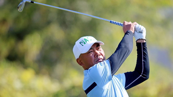 蜈支洲岛海南精英队队长叶森交出73杆(+1)。