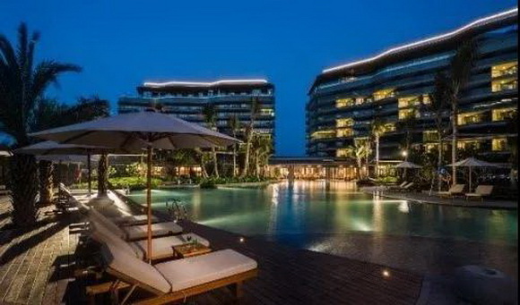 ▲ 蓝湾绿城威斯汀度假酒店 海南绿城蓝湾度假酒店 海南绿城蓝湾度假酒店位于北纬18°黄金纬度的海南清水湾,毗邻南湾猴岛,拥有清水湾最后2公里绝美海岸线——沙滩松软细白,海水湛蓝如玉,天空净无微尘。酒店为通透的玻璃幕墙设计,风格现代、时尚、精致,视野开阔无阻,仰望时蓝天、白云尽收眼底,俯首间海景、高尔夫景双重景观近在咫尺。
