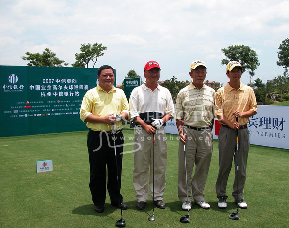 【golftime讯】2007年7月1日,中信朝向中国业余高尔夫球巡回赛本年度第四站比赛——杭州中信银行站的嘉宾、球员配对赛,在绍兴鉴湖高尔夫球会举行。中国高尔夫球协会副主席、中国职业高尔夫球员协会主席、中信朝向高尔夫管理有限公司董事长王军先生出席开球仪式,并为赛事开出彩球。浙江省高尔夫球协会名誉主席张蔚文先生等领导嘉宾也出席了开球仪式。