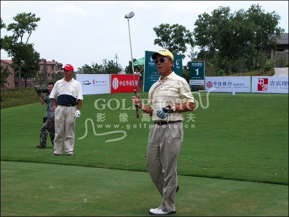 【golftime讯】2007年7月1日,中信朝向中国业余高尔夫球巡回赛本年度第四站比赛——杭州中信银行站的嘉宾、球员配对赛,在绍兴鉴湖高尔夫球会举行。中国高尔夫球协会副主席、中国职业高尔夫球员协会主席、中信朝向高尔夫管理有限公司董事长王军先生出席开球仪式,并为赛事开出彩球。浙江省高尔夫球协会名誉主席张蔚文先生等领导嘉宾也出席了开球仪式。