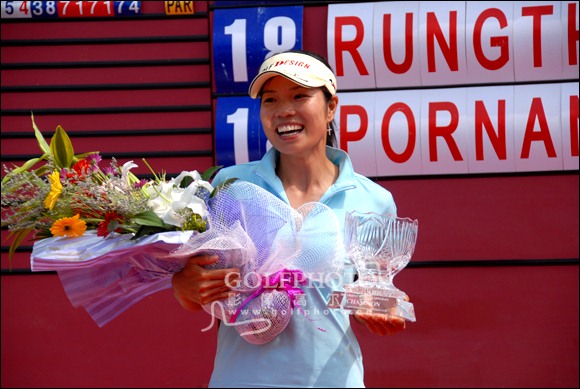 【golftime讯】2007中国女子职业巡回赛·东方名人系列赛青岛站比赛7月7日在东方(青岛)生态体育俱乐部进入决赛轮的角逐。连续两天领先的中国内地球员胡玲,决赛轮依然表现出色。众人在第18洞果岭守候领先组,为她们加油鼓劲。在最后一洞果岭,胡玲果断地一推进洞,锁定了胜局,将冠军奖杯收入囊中。胡玲的总成绩是216杆(71-71-74)平标准杆。杨涛丽决赛轮猛烈进攻,火拼到底,打出69杆-3的好成绩,以217杆(75-73-69)的总成绩与尚林艳排在第2位。泰国球员伯娜隆和朗泰娃·潘加同以218杆的总成绩取得并列第4名。