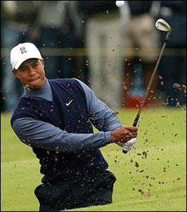 R&A的官员阿兰·霍尔姆斯(Alan Holmes)允许他在一球杆长度范围内进行补球,这样伍兹就能在草里自由抛球,然后他用长铁杆把球打到接近果岭的地方。一记漂亮的劈起杆把球打过水壶沙坑的边缘,最后推进距洞8英尺的保PAR球。