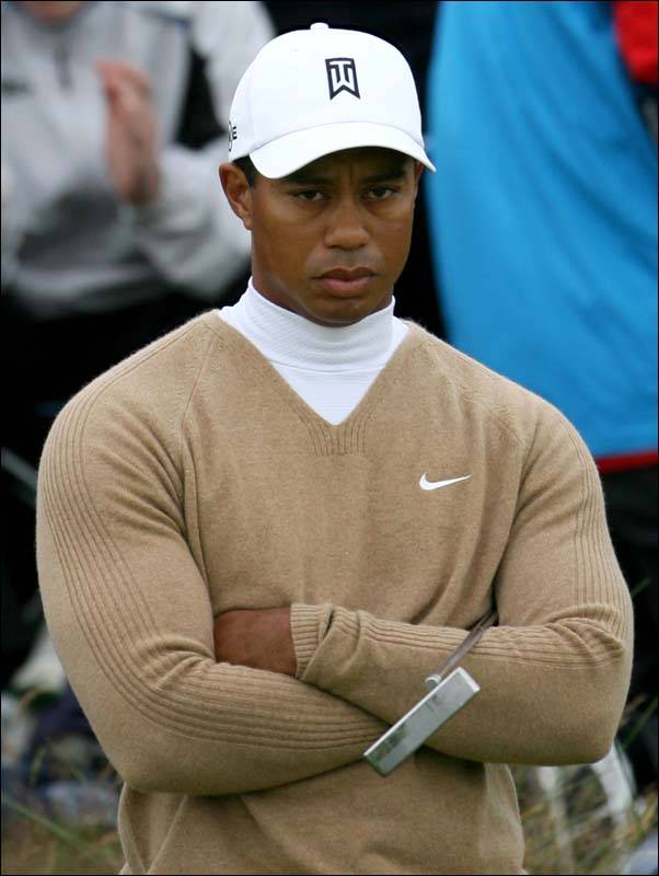 英国公开赛的两轮比赛后,加西亚仍处于领先位置。世界排名第1的伍兹在本周追求英国公开赛的三连冠,但他第二轮只打出74杆的成绩,目前的总成绩落后加西亚7杆。 图为伍兹在第2洞果岭表情凝重的看着自己打出的球。 (golftime·陈艳编译)