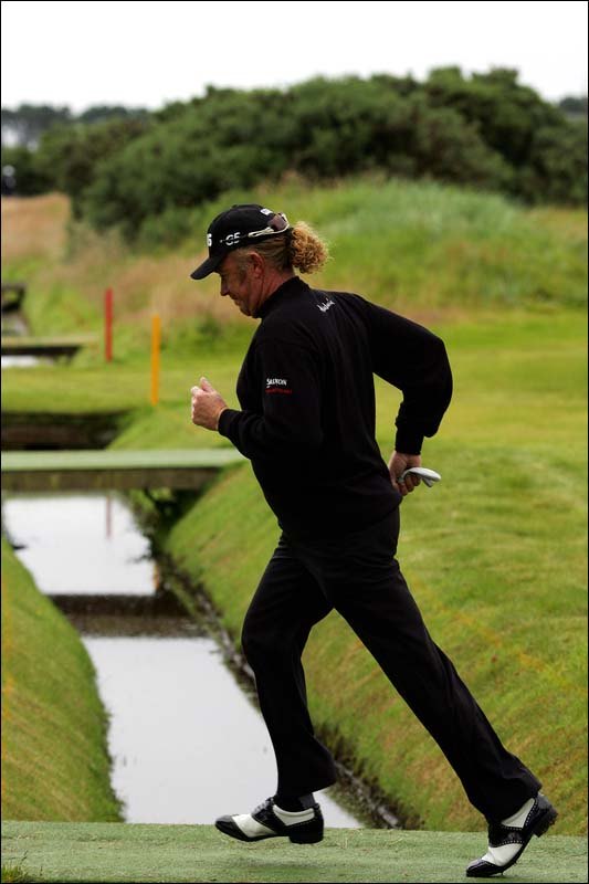 英国公开赛的三轮比赛结束后,加西亚以204杆的总成绩排在首位。西班牙球星吉梅南兹第三轮的成绩是72杆,高于标准杆1杆,总成绩是211杆,排在并列第10位。 吉梅南兹在周六的比赛中捉了3只鸟,吞了一个双博基和两个博基。 图为吉梅南兹在疾跑过第10洞的小桥。 (golftime·陈艳编译)