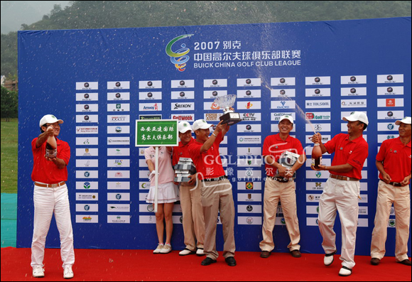 【golftime讯】2007别克中国高尔夫球俱乐部联赛中西分区赛在西安亚建国际高尔夫俱乐部落幕。西安亚建代表队占尽天时、地利、人和,以总成绩785杆获得中西分区赛冠军。河南思念代表队、武汉金银湖代表队分别名列第二、第三名。廊坊东方大学城代表队与京南乡村代表队战成平分,根据规则,廊坊东方大学城第二轮的成绩领先于京南乡村代表队,最终获得第四名,涉险挺进总决赛。