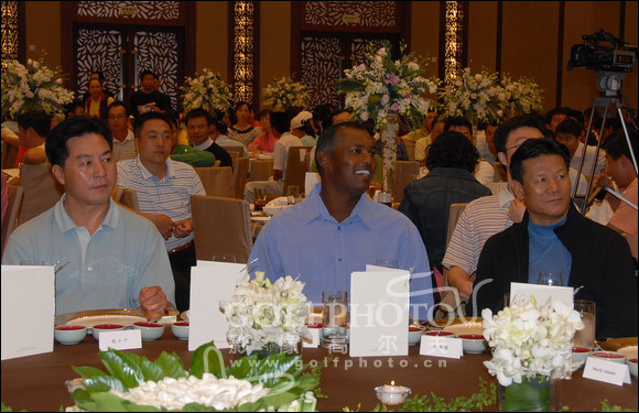 午餐后,维杰·辛格到访天津帝景高尔夫俱乐部新闻发布会,在京津新城凯悦酒店举行,天津高尔夫球协会主席张昭若、京津新城帝景体育俱乐部总经理余荣熙、IMG亚洲高尔夫服务部高级副总裁马克·亚当出席了发布会。维杰·辛格表示,在新球场上打完18洞后,他认为球场的状况非常好,很令他满意,无论从距离、球道和果岭都建设的非常棒,完全与自己的设计思想没有区别,有些地方还超出了他的想象。而余荣熙总经理则认为,3年来建设了27洞的球场,特别是请维杰·辛格设计的锦标赛级球场得到他本人是肯定,是非常高兴的事,未来2、3年这里会更漂亮,新会所建好以后,我们还会继续把球场维护的更好,力争打造中国十大球场。业巡赛7年了,没来过天津,去年底我们与朝向组委会讨论,为天津争取一站,现在我们经过两、三个月的准备,一定要办成7年来最好的一场业巡赛。