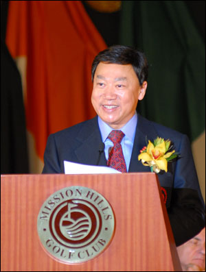 右图为观澜湖高尔夫球会主席朱树豪博士在开幕仪式上致辞。 |