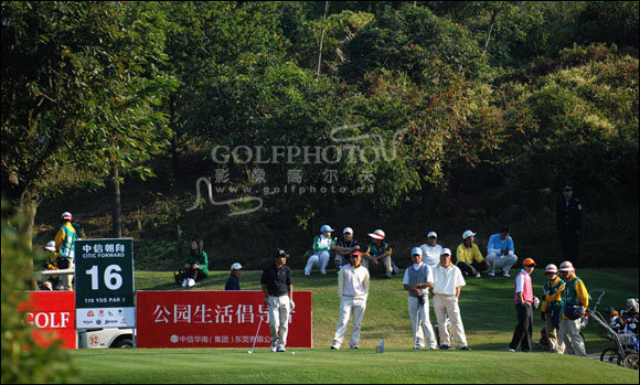 【golftime讯】2007中信朝向中国业余高尔夫球巡回赛年度总决赛——中信地产站,11月28日进行首轮比赛,共有98名男子选手、36名女子选手参加。本轮男子打出90杆(含)以下、女子打出95杆(含)以下的选手,方可进入次轮赛事。首轮战罢,国家队队员徐乐打出79杆,领先群芳;另一名国家队队员黎佳韵打出82杆,排在第2位;中国台北的倪珮仪以83杆的成绩排在第3位;男子组因天色已晚未完成比赛,目前中国台北的杨振豪以79杆的成绩暂时领先。