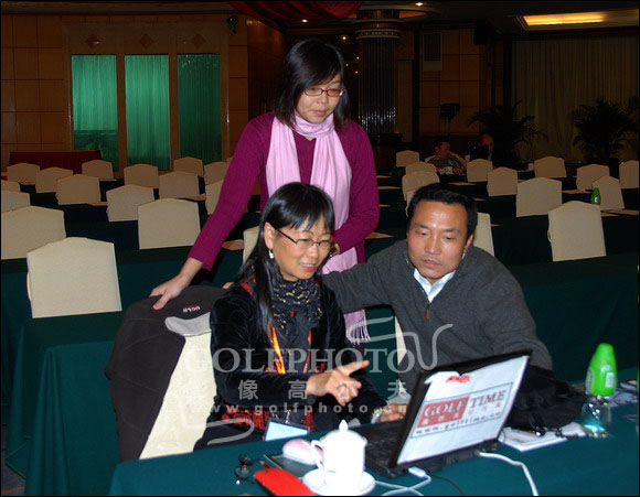 图为新闻官郑军(右)指挥本网论坛现场报道。 (报道:艳洁/摄影:golftime·阿沛) |