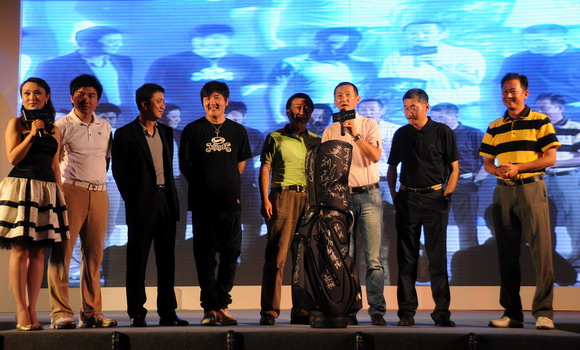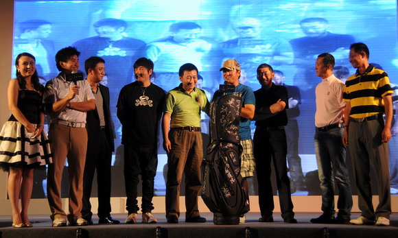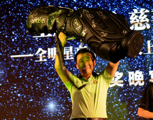 【golftime讯】2010年全明星高尔夫重庆上邦公益慈善赛,5月25日晚在上邦社区内的戴斯酒店举行颁奖和慈善晚宴,全明星球队捐赠的一套球杆和签满明星名字的球包,以2万元起拍,经过多人的多次加价,最终被上邦球会总经理张益军以32万元拍得,用以捐助患白血病的中国高尔夫职业运动员邢晓轩,张益军总经理表示,要把这个球包永远陈列在上邦球会。重庆腾翔实业有限公司在这次活动中,向北京演艺人协会公益慈善基金捐款50万人民币。