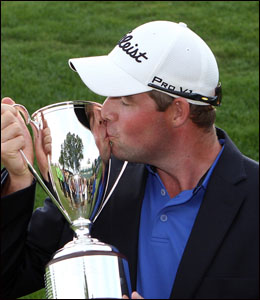 马克·莱什曼周日打出62杆,低于标准杆8杆,以领先查利·霍夫曼两杆夺得旅行者锦标赛的冠军。