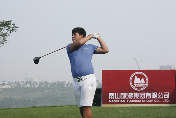 【golftime讯】2013中国业余高尔夫球锦标赛2013年7月25日在南山丹岭翠谷球场进行男子首轮比赛,14岁少年王友鑫取得68杆-4的惊人成绩排名第一。以71杆-1排名第二位的是17岁业余青少年高手张进;南山本土球手、新近加入国家集训队的17岁曲洪锌以73杆+1与刘臻霖、谭光远及南山本土球手隋勇言并列第三。夺冠热门业余球手王曦晨因中暑发烧9洞完成后遗憾退赛,另有9人或退赛或未参赛。