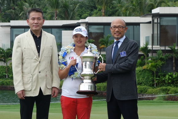 【golftime讯】2015蓝湾大师赛第四轮决赛在风大、阵雨忽下忽停中进行。领先组直到第18号洞才将难解难分的结果决出,美国金-考夫曼和中华台北龚怡萍的推失小鸟,而韩国22岁金世煐沉着镇定的小鸟推,以一杆优势赢得冠军,获得冠军奖杯、30万美元奖金。刘艳获得最佳业余球员奖。 (摄影/报道:golftime·阿沛)