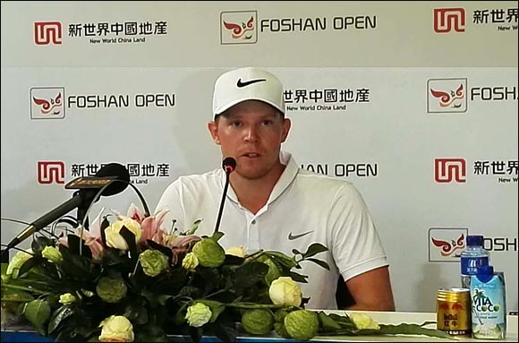 【golftime讯】10月22日,佛山公开赛的第三轮在风和日丽中进行。相比前两天的比赛,今天的天气条件更好,有利于球员们打出好成绩。 54洞的比赛后,德国球员亚历山大·耐普以200杆,低于标准杆16杆的总成绩处于领先位置,他周六的成绩是64杆。 赛后,耐普走进新闻中心接受了媒体的采访。佛山公开赛前,耐普曾在佛山高尔夫球会训练了七天的时间,所以这次来参赛,他对球场环境和天气条件都更熟悉。耐普说他喜欢佛山的天气,也喜欢佛山的观众们,他们很热情。期待明天的比赛耐普能有机会竞争冠军。