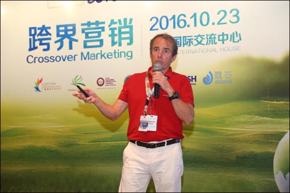 【golftime讯】“探讨如何给会员和客户更好的生活方式、社交平台和消费体验,是今天聚集各位于一堂的最重要目的。”在佛山公开赛2016文化与产业交流会最后一天以“跨界营销”为主题的探讨上,戴耀宗博士这样点出。今天的交流会从高尔夫延伸至旅游、赛马、游艇、航空等休闲行业,很荣幸邀请到了法国高尔夫旅游代表 Francois Bras、香港赛马会-竞骏会Eliza Leung、南沙游艇会Albert Khong、苏格兰国际发展局 Mike Sinclair、亚飞太平洋有限公司 Bryan Ba担任讲座嘉宾,与在座多位职业经理人探讨如何实现行业之间的跨界营销。