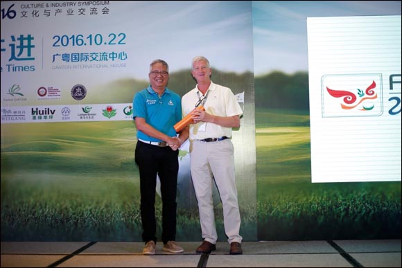 【golftime讯】第三天的佛山公开赛2016年文化与产业交流会——与时并进,探讨的是草坪管理维护。邀请到北京果岭汇郝建忠先生、广东省草业协会副会长张巨明教授、拜耳中国区域首席代表张赟、美国BRANDT布兰特公司中国代表处首席代表樊惠小姐、美国富绿瑞特中国区首席代表袁立先生、亚洲草坪顾问有限公司董事总经理Mr. Richard Hamilton以及欧巡赛中国区总监Mr. Simon Leach与在座的来宾展开了关于草坪管理以及赛场草坪维护等话题的深入交流。