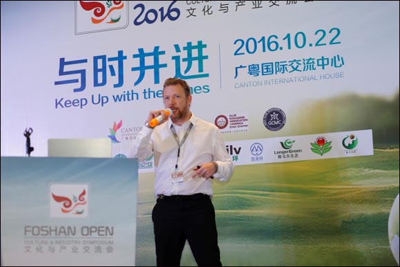 最后,欧巡赛中国区总监Mr.Simon Leach赞扬了佛山公开赛的准备工作很充足,还介绍了一个大型赛事的前期准备工作。他也提到了欧巡挑战赛的场地选择主要是在二线城市,这有利于提高二线城市的知名度与形象,为当地的球手带来了很大的机会。
