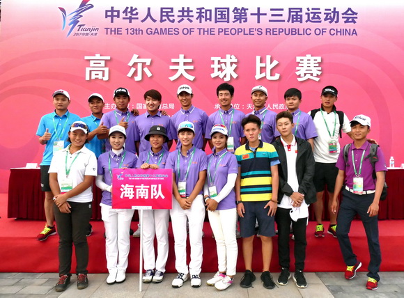 【golftime讯】中华人民共和国第十三届运动会高尔夫球比赛项目,9月1日在天津盘山高尔夫球会举行参赛代表队入场仪式,14支参赛代表队领队、教练、队员,全体裁判员精神抖擞,闪亮登场。东道主天津队潘艳红代表运动员宣誓,裁判长冯力源代表裁判员宣誓。随后各队的大合影环节充满战斗气息和欢乐气氛。大赛一触即发,2—5日四轮比赛哪个参赛队将捧起团体冠军奖杯?等着瞧。 (摄影/报道:golftime·阿沛)