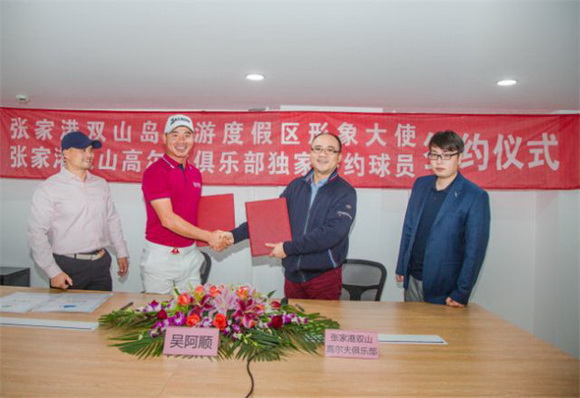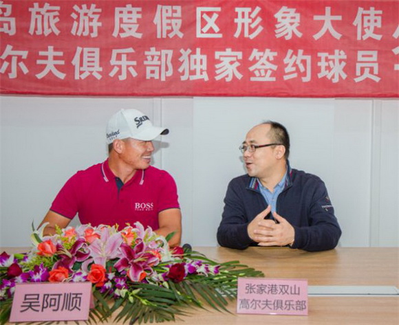 签约仪式上,吴阿顺也表达了对成为张家港双山岛旅游度假区形象大使及张家港双山高尔夫俱乐部独家签约球员的喜悦之情,对双方的合作充满了期待,他说:“非常感谢能有机会和双山高尔夫俱乐部合作,并且很荣幸能成为双山岛旅游度假区的形象大使。双山高尔夫俱乐部的训练设施和球场品质都是一流的,和他在世界各地参加国际比赛所打过的世界著名球场相比都毫不逊色。