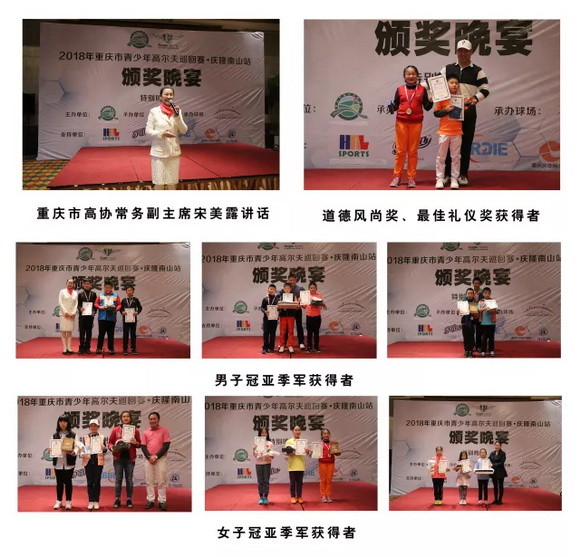 【golftime讯】3月25日,重庆市青少年高尔夫巡回赛,2018年赛季的揭幕站在风景似画的庆隆南山高尔夫球会精彩收杆!参赛的人数达到了巡回赛举办两年以来最多的一次。本次赛事分为六个组别共87人,冠军分别属于:吕泓毅(男子C组)、周彦含(男子D组)、夏楚沐(男子E组)、徐子珺(女子C组)、谢忻旎(女子D组)、彭严萱(女子E组);孙瑞蔓、唐子昂分别获得道德风尚奖、最佳礼仪奖!