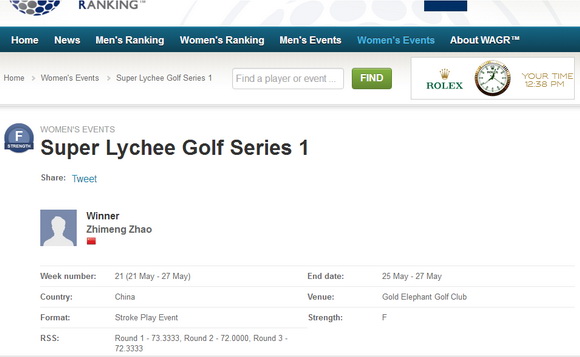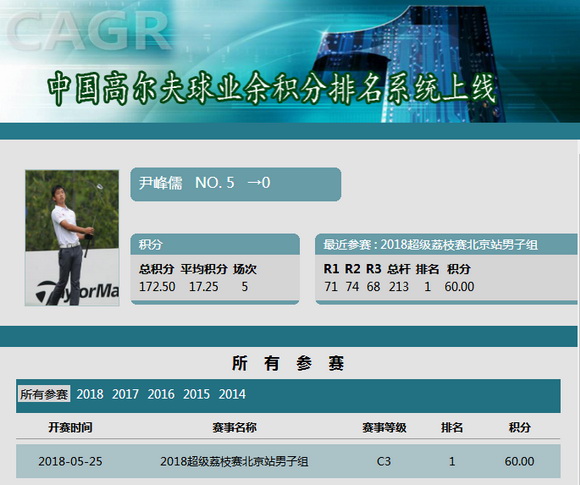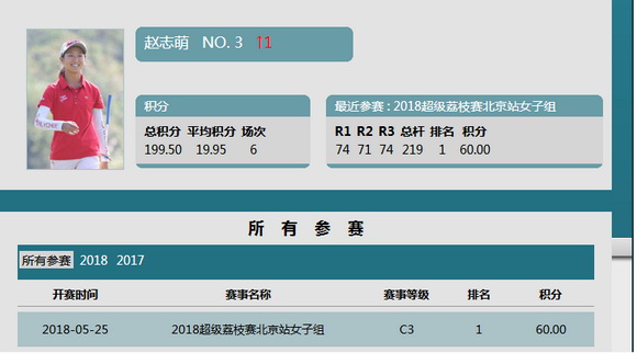 在2018年第一站比赛中,男子冠军尹峰儒和女子冠军赵志萌均在中国高尔夫业余积分中获得了60分的冠军积分。与此同时他们还在成为了超级荔枝全国高尔夫系列赛历史上第一批拿到世界业余积分的冠军球员。
