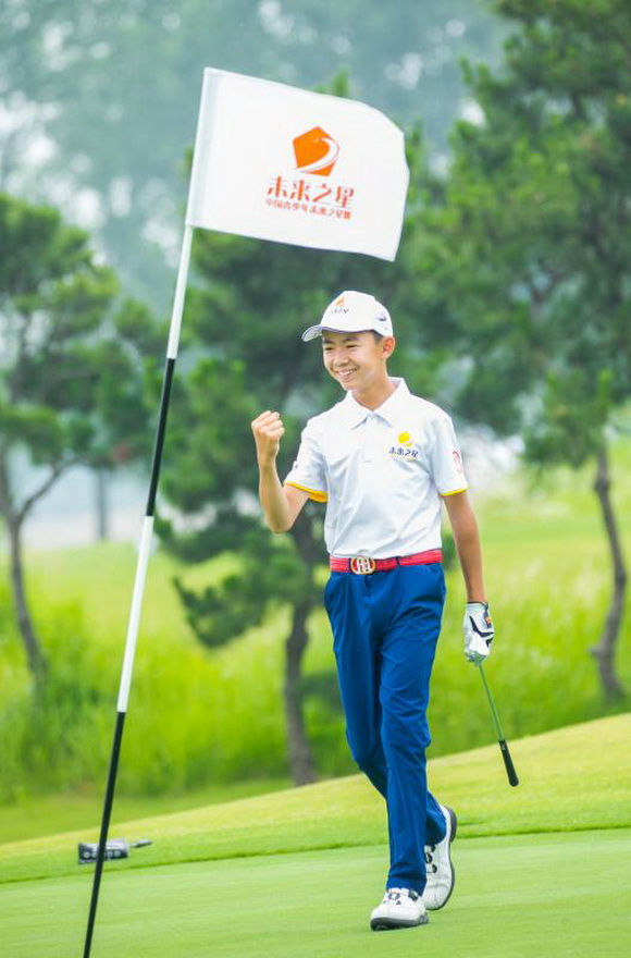 12岁徐李润泽来自山东烟台,他前10个洞打出低于标准杆5杆,包括转场3个洞打出低于标准杆4杆,领先大连王翌翔4杆。“后边节奏出了点问题,”徐李润泽说,“明天将重新分组,会和优秀的选手分在一起,我要努力打出更好的成绩。”