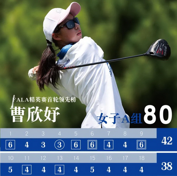 【golftime讯】8月17日,FALAGOLF青少年球员精英赛在黄山松柏球会进行A、B组第一轮比赛,男子A组黄梓杰、周楚涵以74杆(+2)并列领先;女子A组中高协积分排名第一的曹欣妤交出80杆(+8)取得领先;男子B组中高协积分排名第一的昌熙桓打出73杆(+1)获得领先;女子B组来自重庆的谢忻旎以72杆(E),2杆领先中高协积分排名第一的马贝卡。